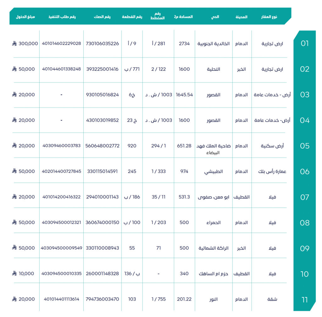 تعلن شركة دار القياس وتحت إشراف مركز الإسناد والتصفية “إنفاذ” وبقرار من محكمة التنفيذ ومحكمة الأحوال الشخصية عن إقامة المزاد العلني (أصداف الشرقية) لبيع مجموعة من العقارات الفريدة والمميزة بالمنطقة الشرقية
