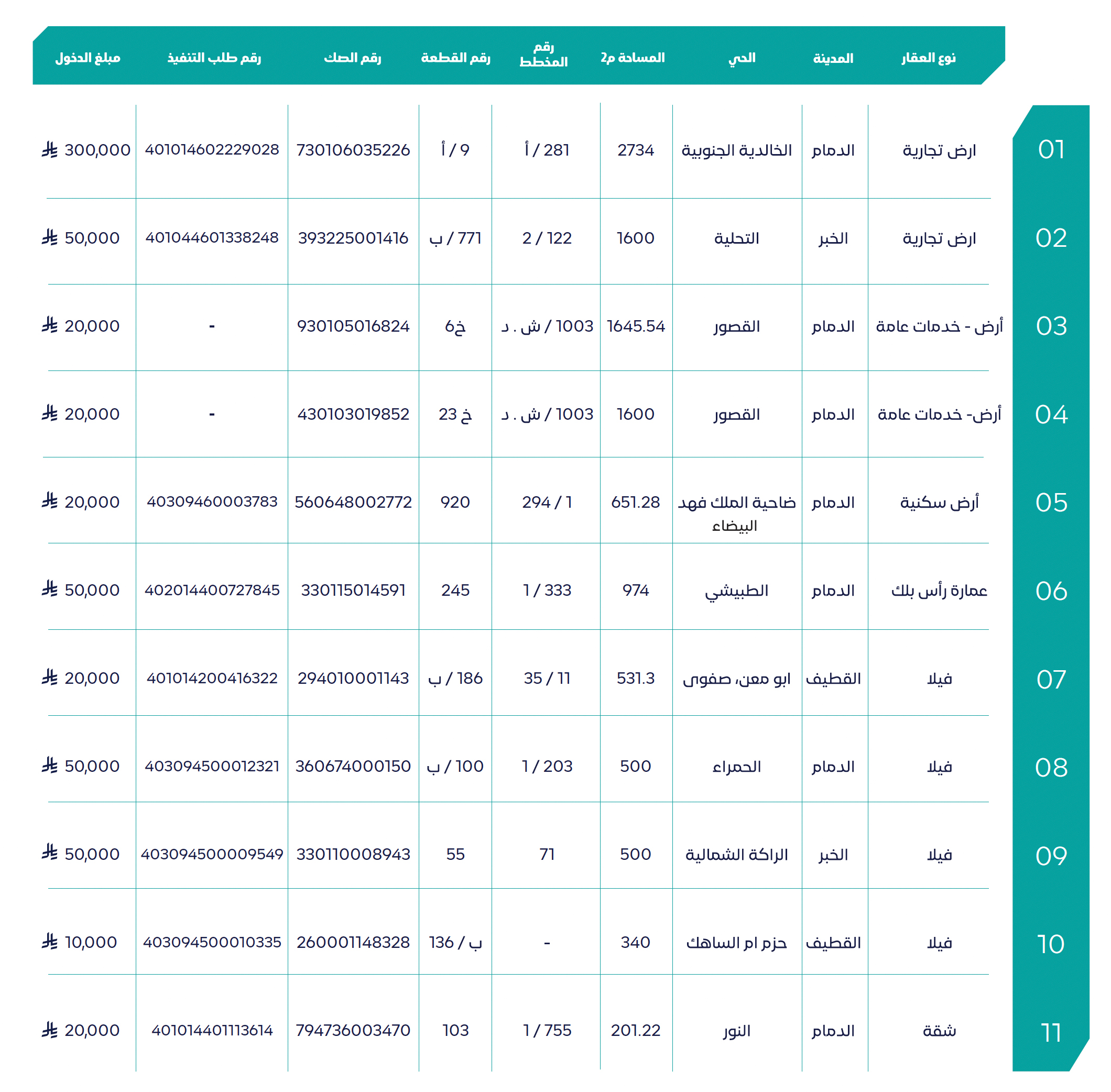 الافتتاح معلومات الأرض رقم الصــك النوع