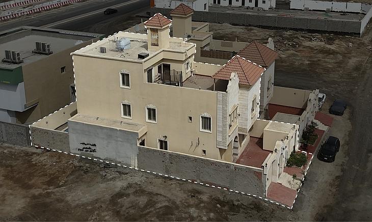 – مساحة الأرض في الصك: 1,591م² – مساحة الأرض في الطبيعة: 1,634.507م²