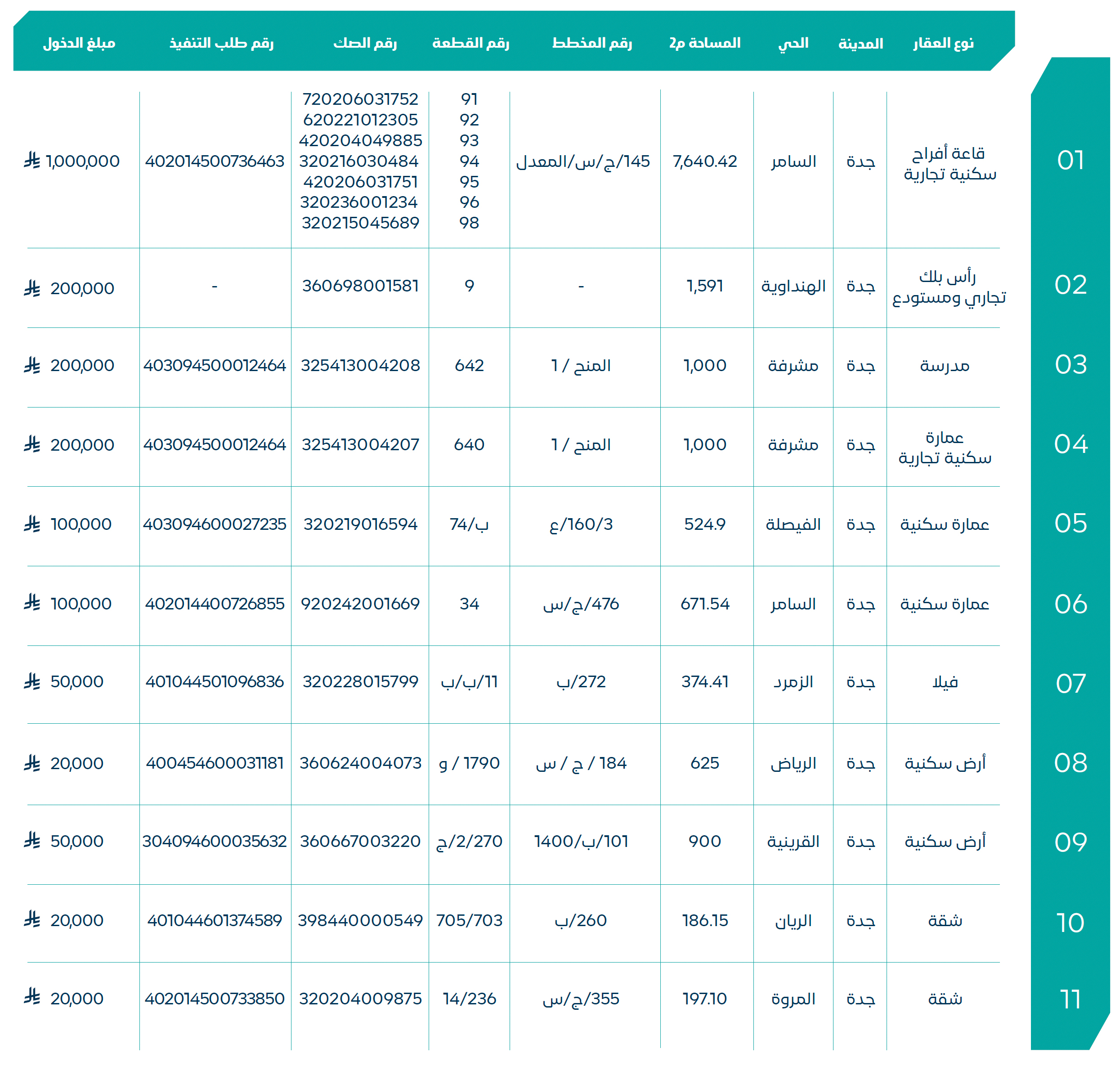 تعلن شركة دار القياس للمزادات عن إقامة مزاد دانات جدة وذلك تحت إشراف مركز الإسناد والتصفية ( إنفاذ ) وبقرار من محكمة التنفيذ وبقرار من محكمة الأحوال الشخصية